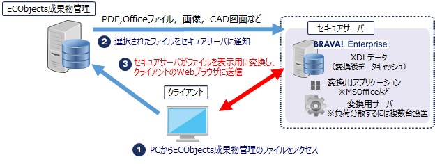 - クライアントにファイルをダウンロードさせずに閲覧のみを許可Webブラウザで表示するためPCへ閲覧ソフトをインストールする必要なし