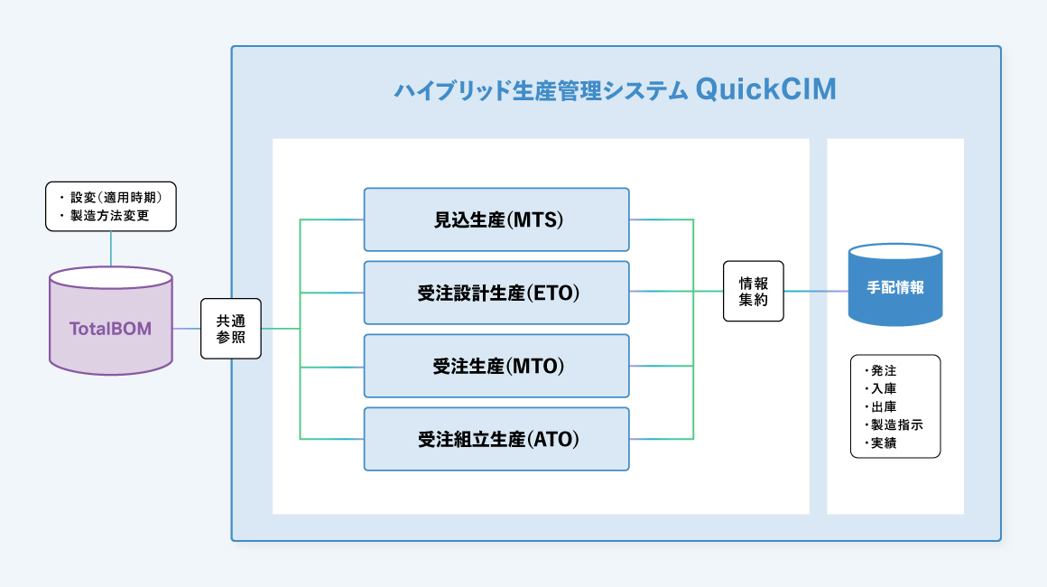 QuickCIMは、見込生産、受注設計生産、受注生産、受注組立生産など